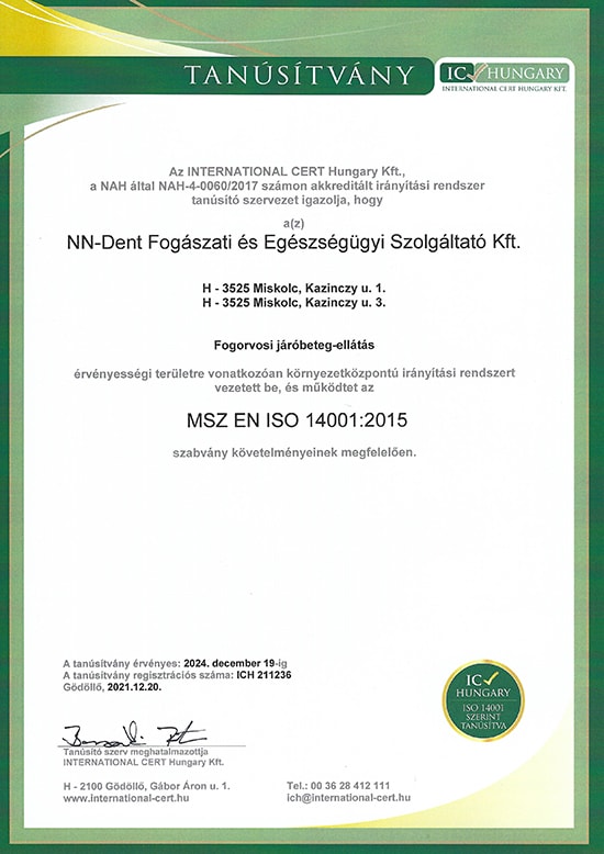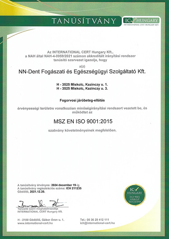 Megvalósulás helye: 3525 Miskolc, Kazinczy u. 1., hrsz.: 2489/A/2.; e-mail: nn-dent@freemail.hu